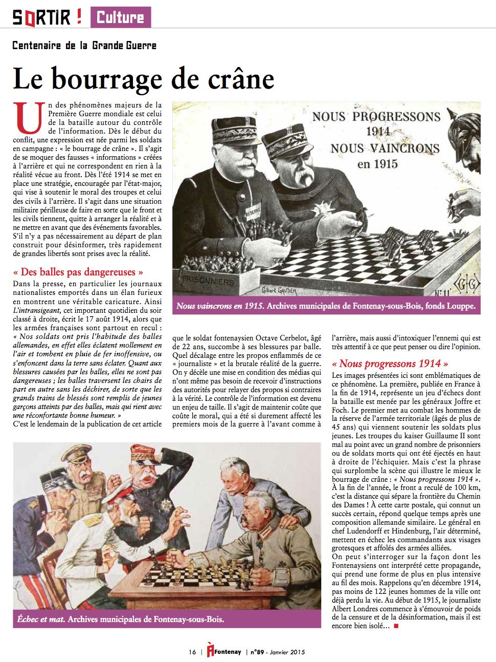 Le bourrage de crâne un des piliers de la Grande guerre.