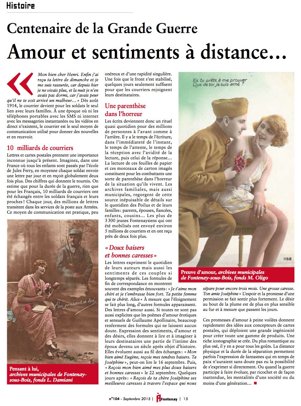 Poursuivons avec le journal municipal A Fontenay la série d'articles sur la Première guerre mondiale et son lien avec Fontenay-sous-Bois.