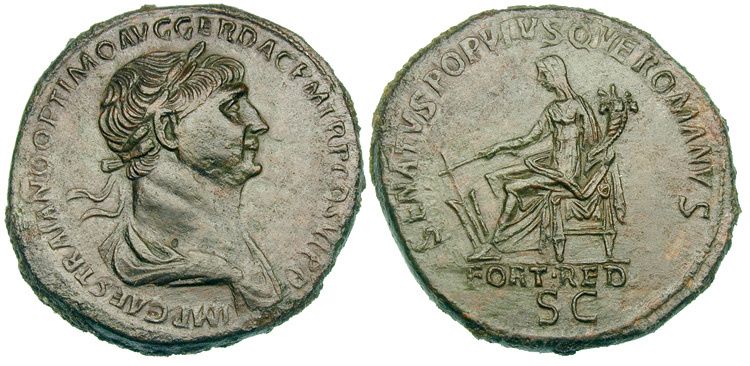 A l'époque impériale, le sesterce est est une grosse pièce de laiton pesant 1/12e de livre romaine soit autour de 27 grammes. Composée de cuivre et de zinc, d'une couleur jaune d'or, elle était très prisée.