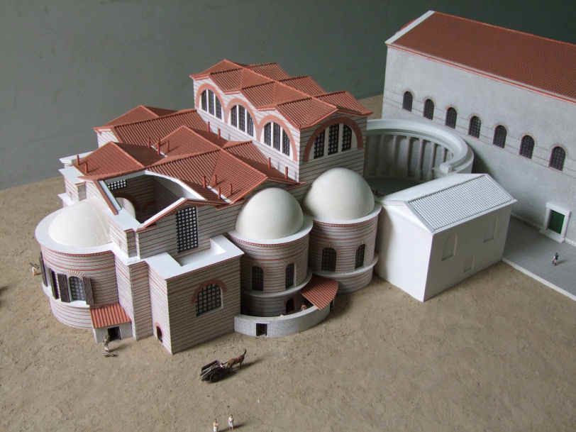 Ci-dessous une image de la maquette du théâtre et une photographie de son état actuel.